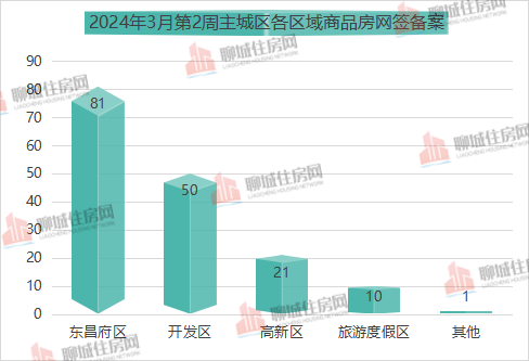 从区域网签数据来看,网签量最多的为东昌府区,共81套,其中住宅用房网签28套,商业用房21套,其他32套;其次是开发区,共50套,住宅用房23套,商业用房3套,其他24套;第三名为高新区,共21套,其中住宅用房8套,办公3套,其他10套;第四名是旅游度假区,共10套,其中住宅用房4套,办公2套,其他4套。最后一名为其他地区,共1套,为商业用房。