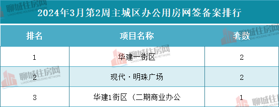 办公用房方面,共有3个项目进行网签备案,数量最多的为华建一街区和现代·明珠广场,网签备案套数均为2套;其次为华建一街区(二期商业办公位列第二,网签备案套数为1套。