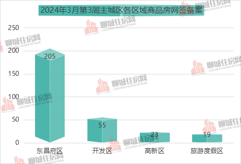 从区域网签数据来看,网签量最多的为东昌府区,共205套,其中住宅用房网签53套,商业用房8套,办公5套,其他139套;其次是开发区,共55套,住宅用房24套,其他31套;第三名为高新区,共23套,其中住宅用房10套,商业用房1套,办公2套,其他10套;第四名是旅游度假区,共19套,其中住宅用房9套,其他10套。