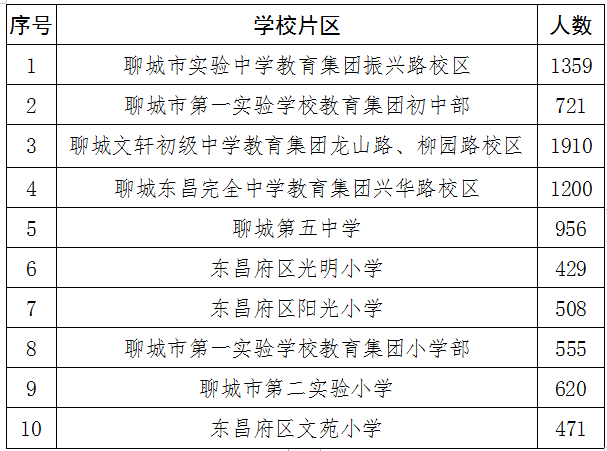 为切实做好东昌府区义务教育学校招生工作,区教体局联合区公安分局,对全区各学校服务片区内常住户籍适龄儿童人数进行了摸底。截至3月22日,对片区内常住户籍适龄人口较多的热点学校摸底情况进行如下公示。请充分关注学位预告提示,不要盲目跟风择校、迁移户口等,否则招生录取有可能被分流到片区外其他学校就读。以上统计时间截至3月22日,不含优抚对象。