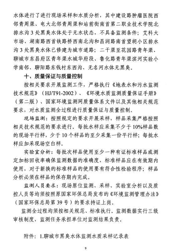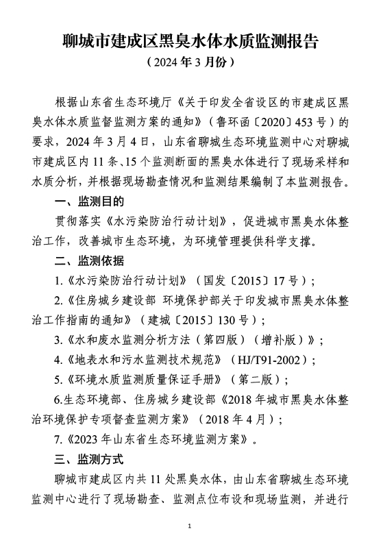 聊城市建成区11条黑臭水体于2020年底已全部整治完成并通过长制久清评估。2021年起持续巩固整治成效,加强日常监管。现将2024年3月聊城市建成区黑臭水体监测报告公示如下: