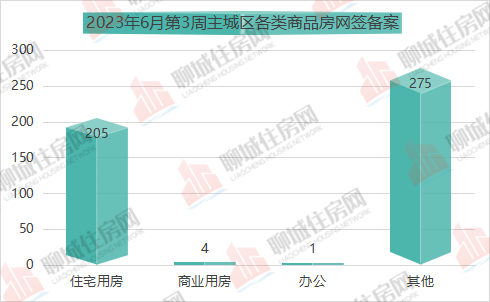 据住房网不完全统计,2023年6月第3周(2023.6.12-2023.6.18)聊城市主城区商品房网签备案数据共计485套!其中,住宅用房共205套,商业用房4套,办公1套,其他(车位、储藏室等其它房屋)为275套。
