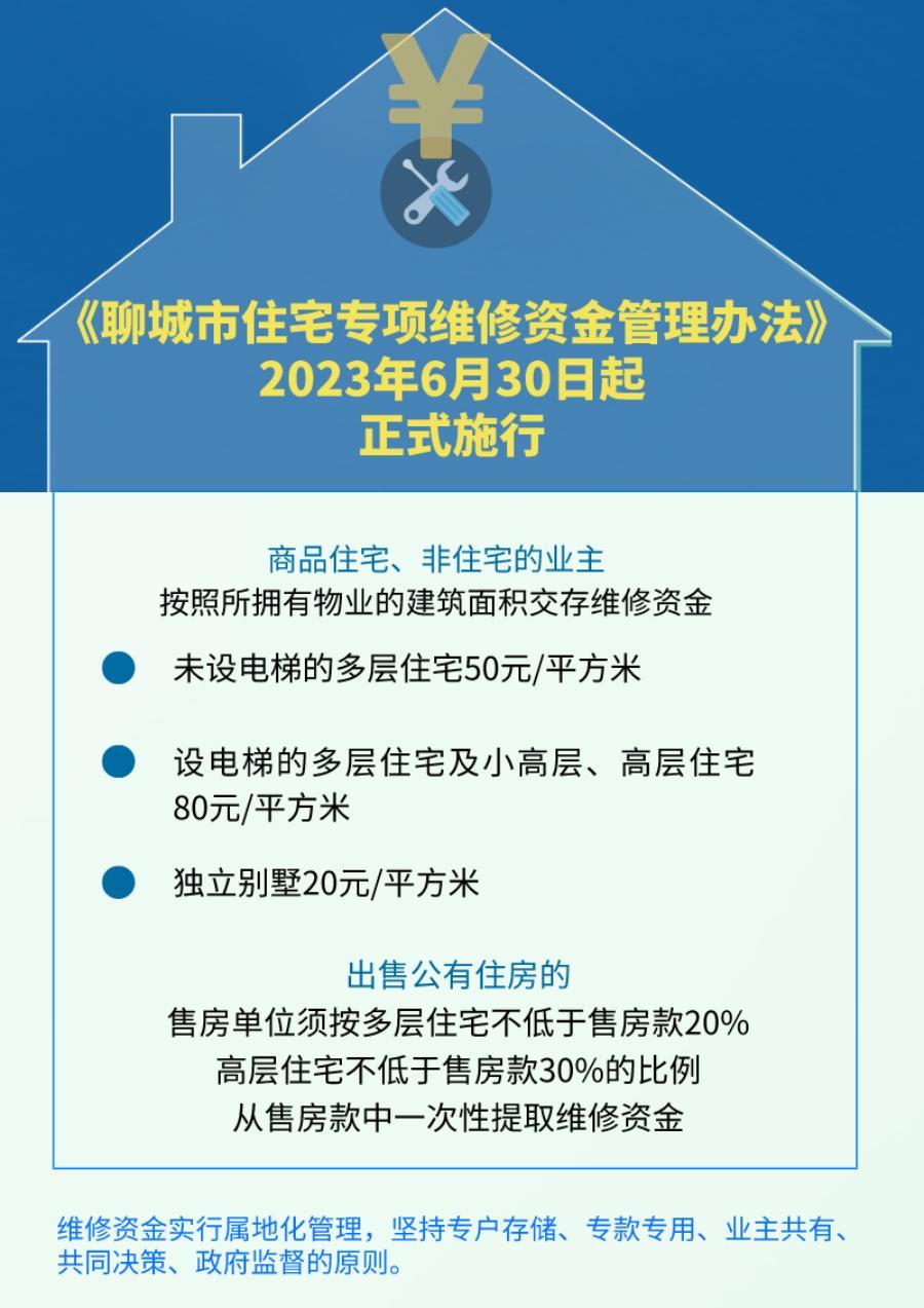 6月19日,为保障业主住宅共用部位、共用设施设备的维修和正常使用,维护业主的合法权益,《聊城市住宅专项维修资金管理办法》(以下简称“办法”)日前正式发布,并将于2023年6月30日起正式施行。办法对于维修资金交多少、归谁管、咋使用等问题均进行了明确。