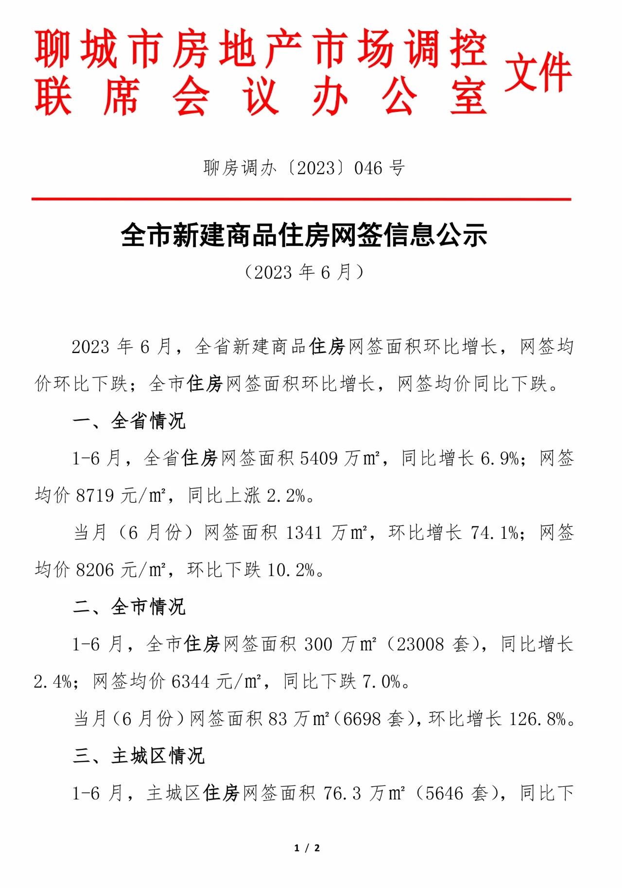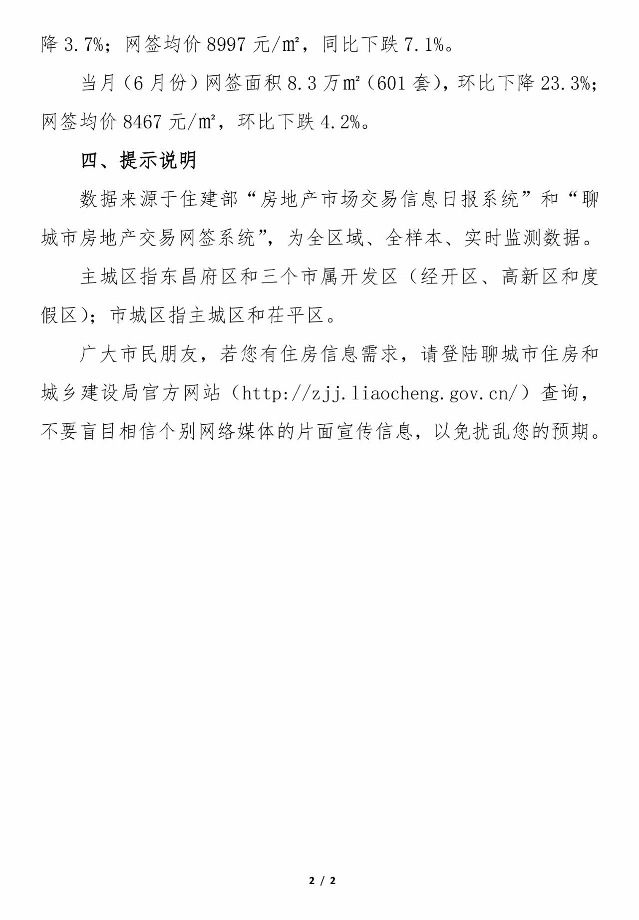 数据来源于住建部“房地产市场交易信息日报系统”和“聊城市房地产交易网签系统”,为全区域、全样本、实时监测数据。主城区指东昌府区和三个市属开发区(经开区、高新区和度假区);市城区指主城区和茌平区。