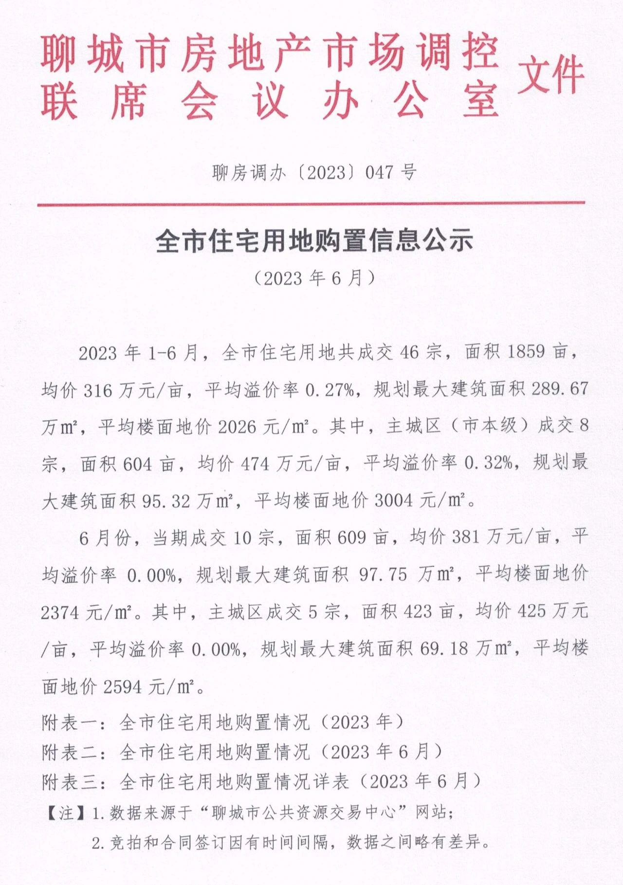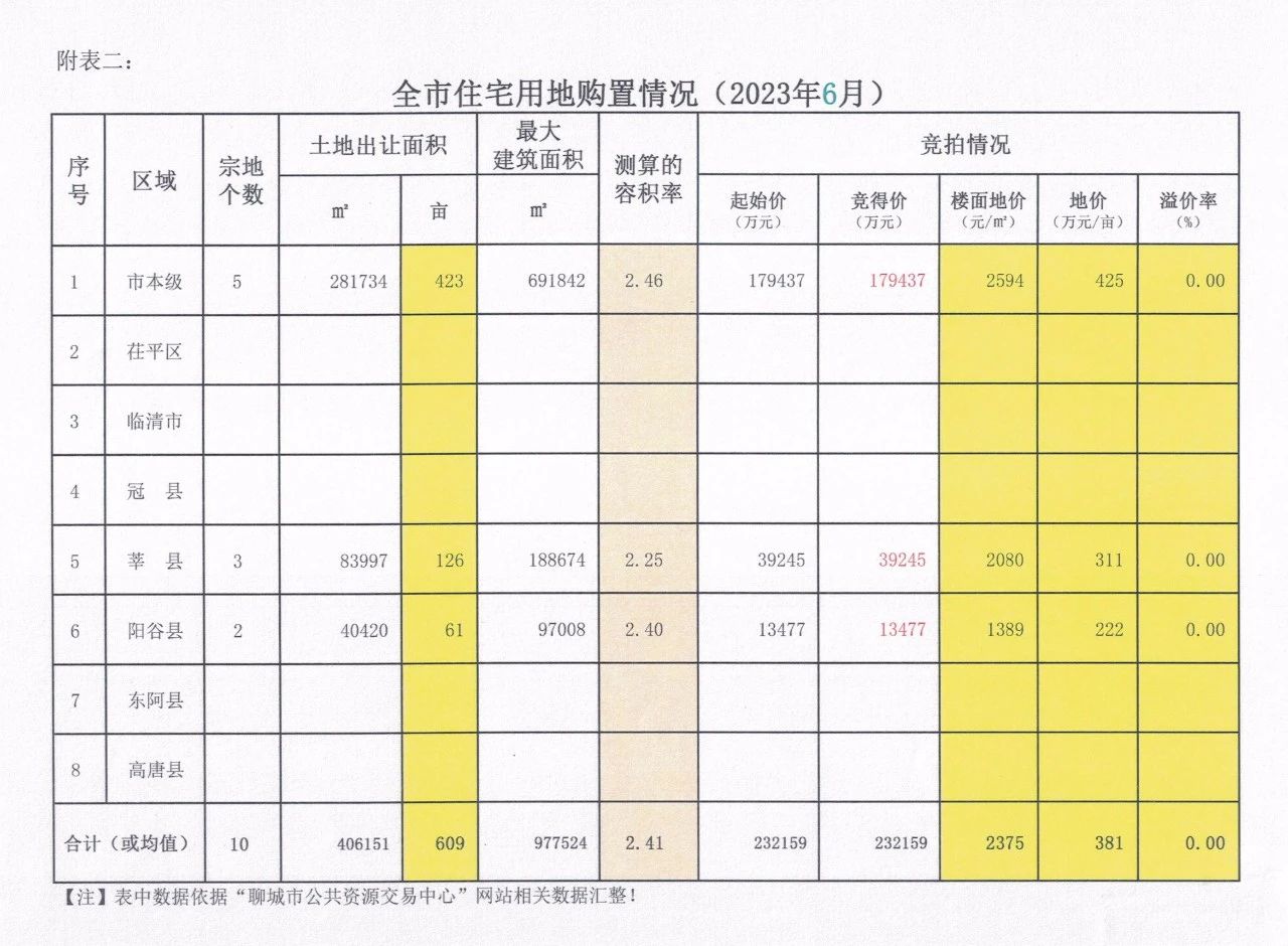 附表二:全市住宅用地购置情况(2023年6月)