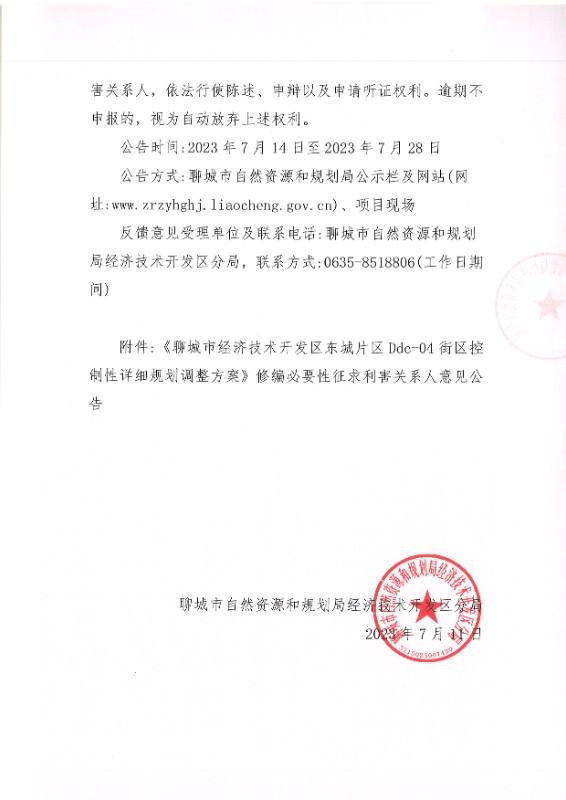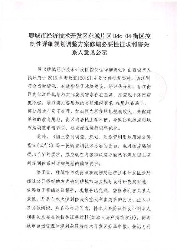 规划名称:聊城市经济技术开发区Ddc-04街区控制性详细规划调整方案修编必要性论证