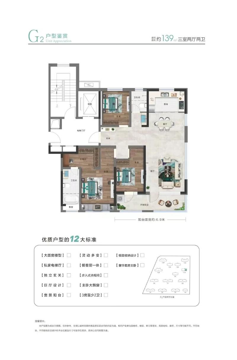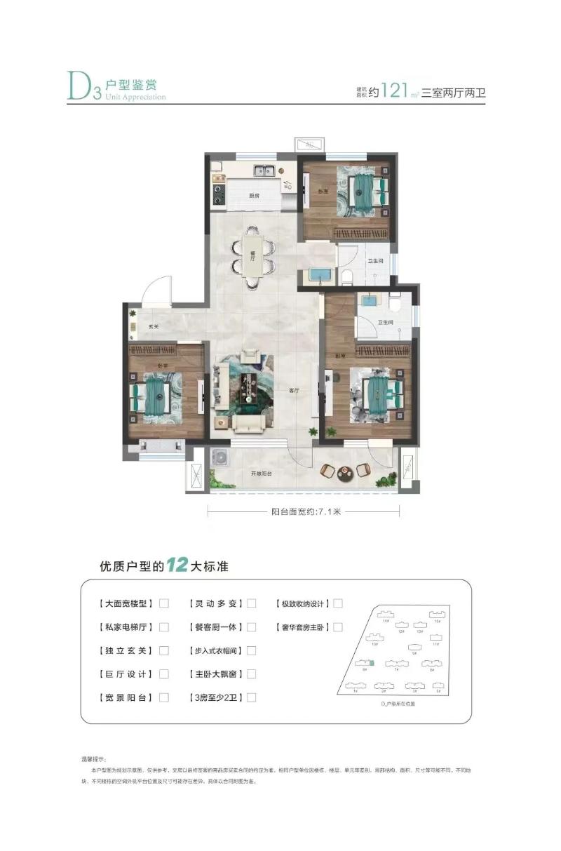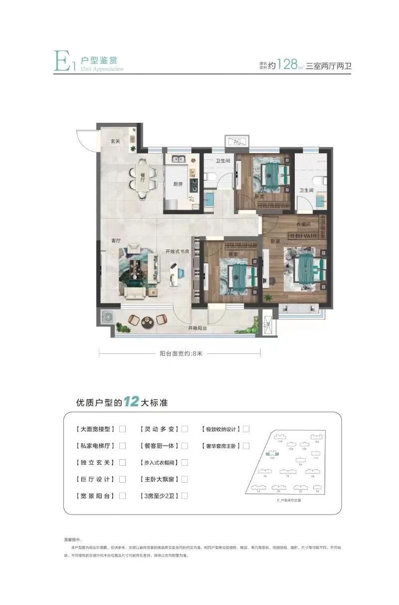 *财信·名筑印象128平三室两厅两卫户型