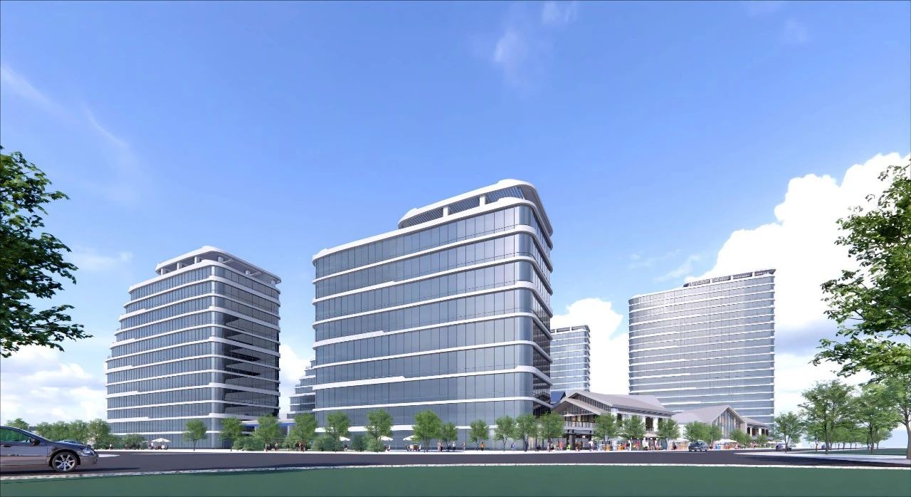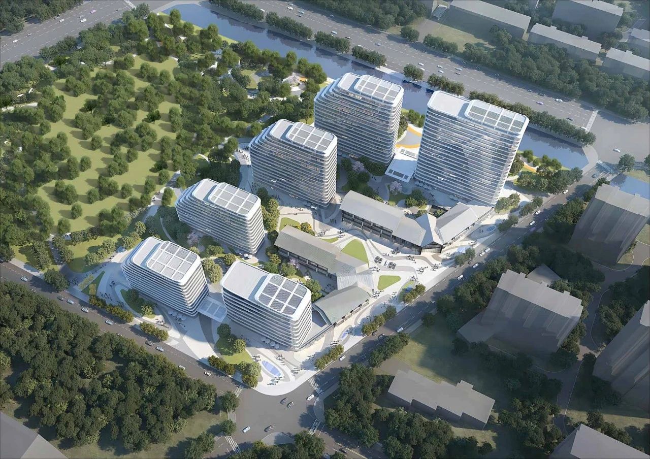 从平面图看,项目规划设计容积率约2.5,项目规划8栋楼。其中,1#-A楼18层,为商务办公;1#-B楼21层,为研发办公;2#楼16层,为科创办公;3#楼3层,为零售商业;4#楼12层,为总部办公;5#楼3层,为购物中心;6#楼12层,为宾馆;7#楼9层,为文创办公服务型公寓。建筑密度30%,绿地率30%,停车位(地上83个、地下494个)577个,非机动车停车位(地上1117个、地下997个)2114个。