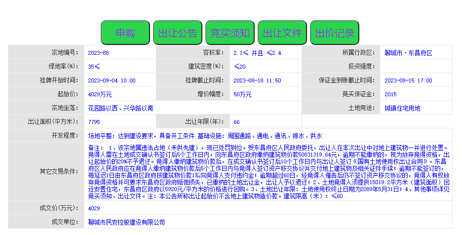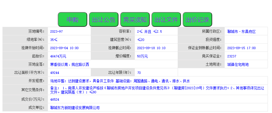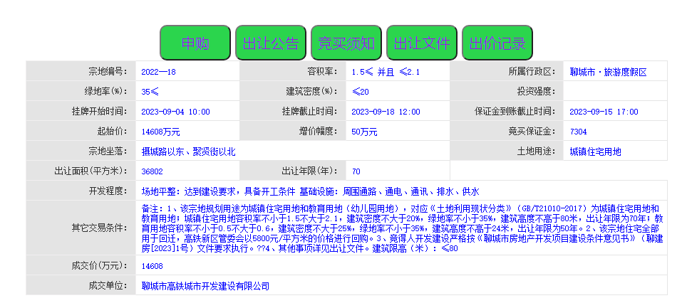 9月18日,聊城城区前期出让的10宗城镇住宅地块和1宗零售商业地块、1宗其他商服用地、1宗工业用地在官方网站进行集中竞拍,13宗地块均竞拍成功!