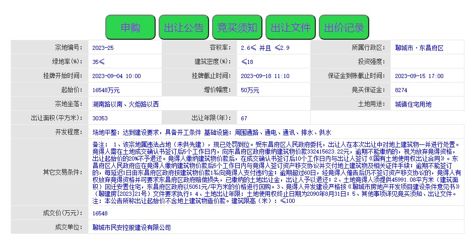 拿地房企:聊城市东昌府区尚东置业有限公司东昌府区分公司