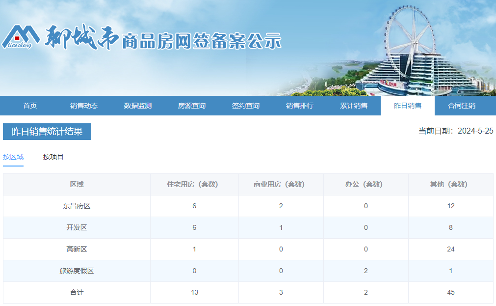 2024年5月24日,聊城市主城区商品房网签统计共63套。其中住宅用房13套,商业用房3套,办公2套,其他住房45套。